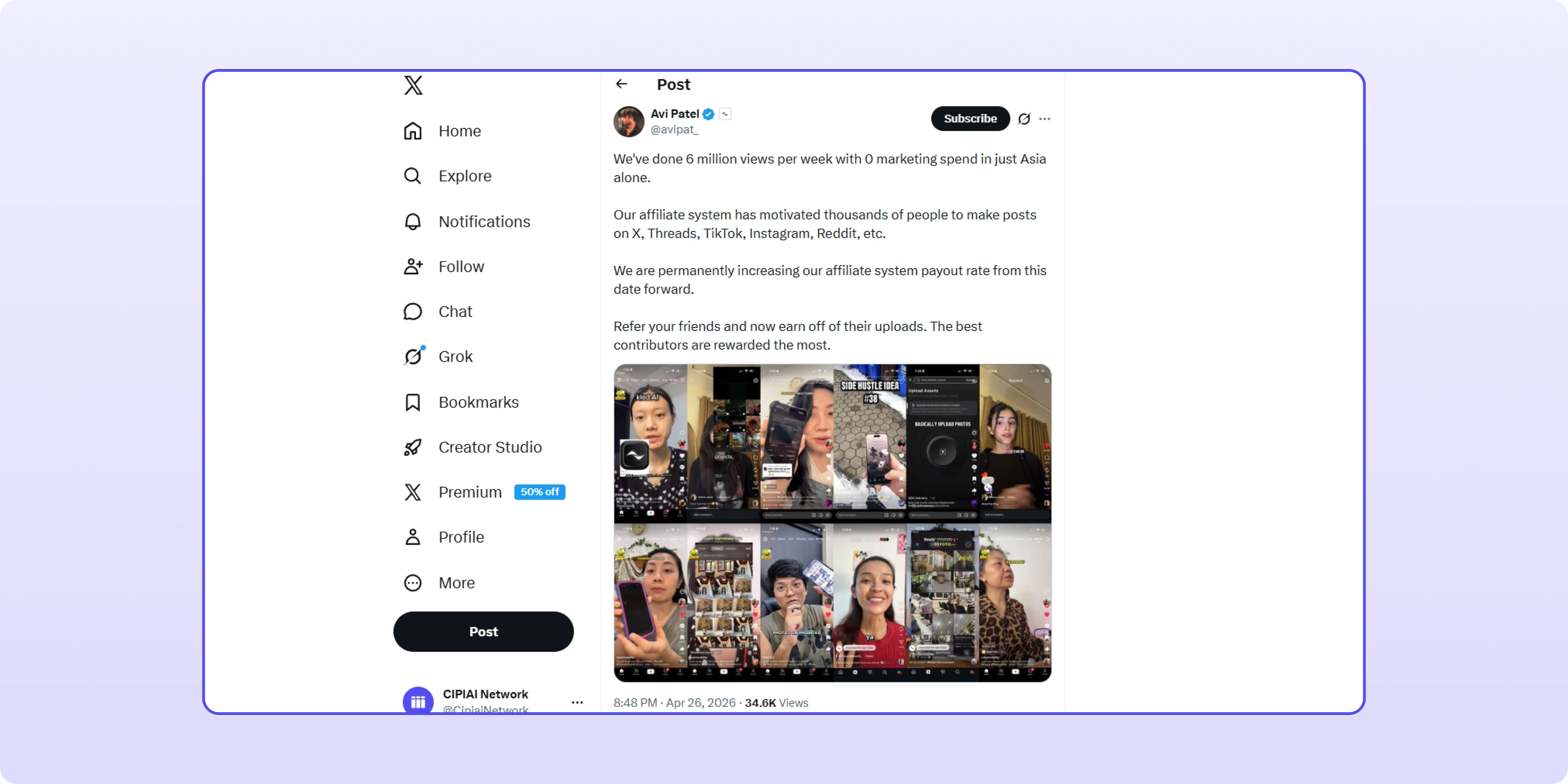 What affiliates can learn from this: The best affiliate systems don't just pay commissions. They create content loops. If you're only thinking about your own posts and campaigns, you're leaving the most scalable distribution channel untouched.