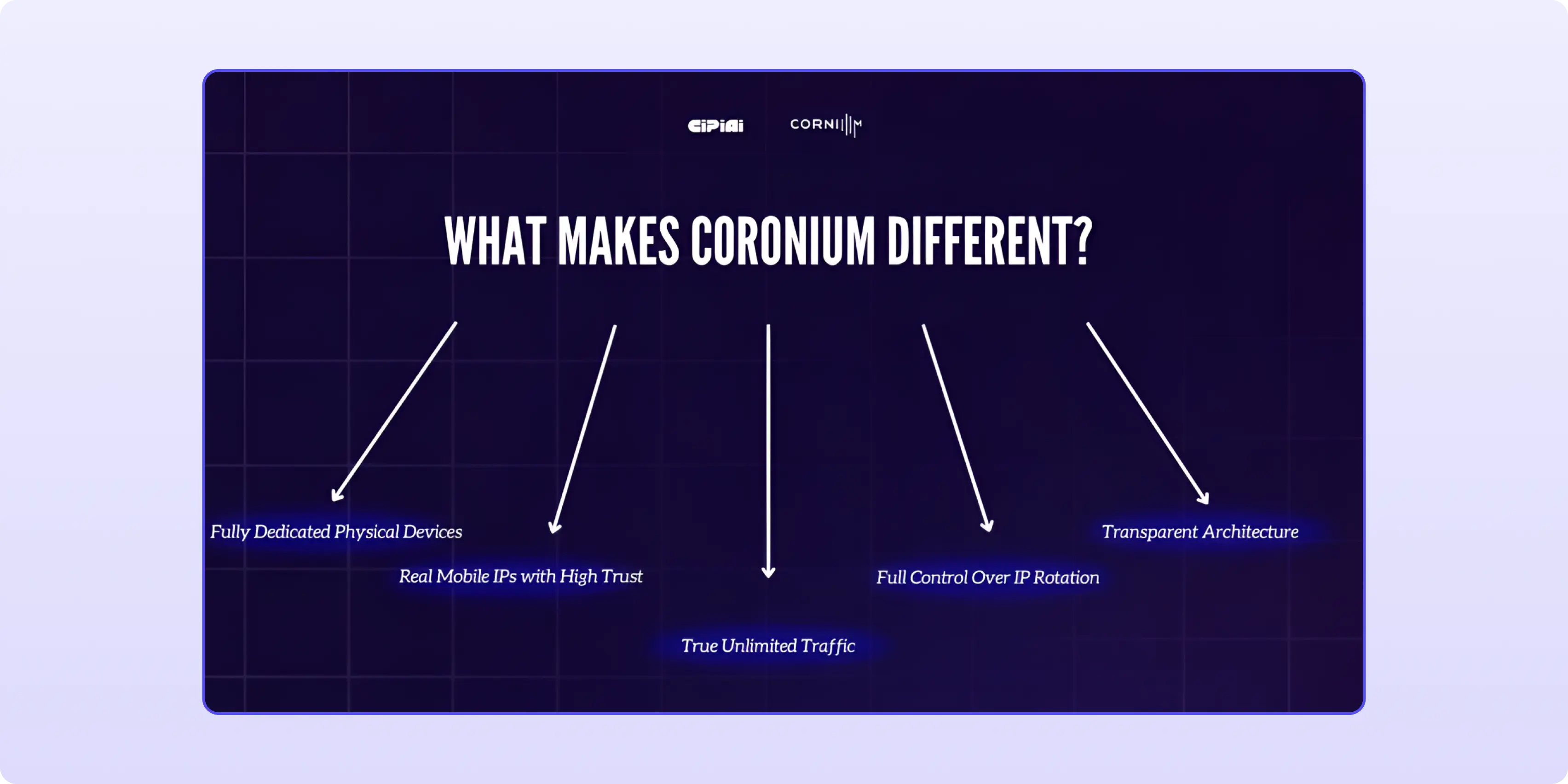 Coronium is built for users who understand that traffic quality starts with infrastructure.