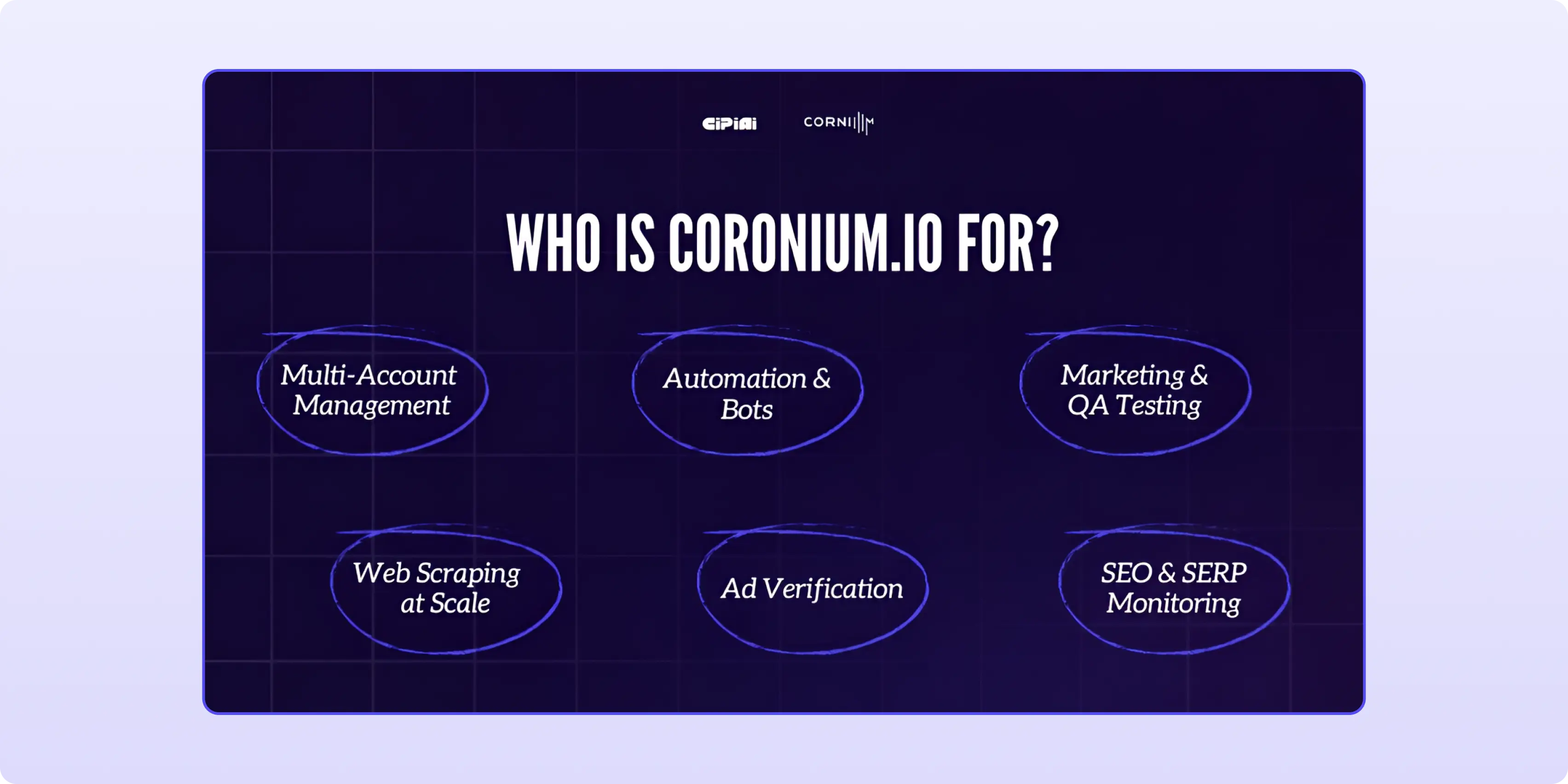 This makes Coronium suitable not only for account management, but also for automation, scraping, and QA testing.