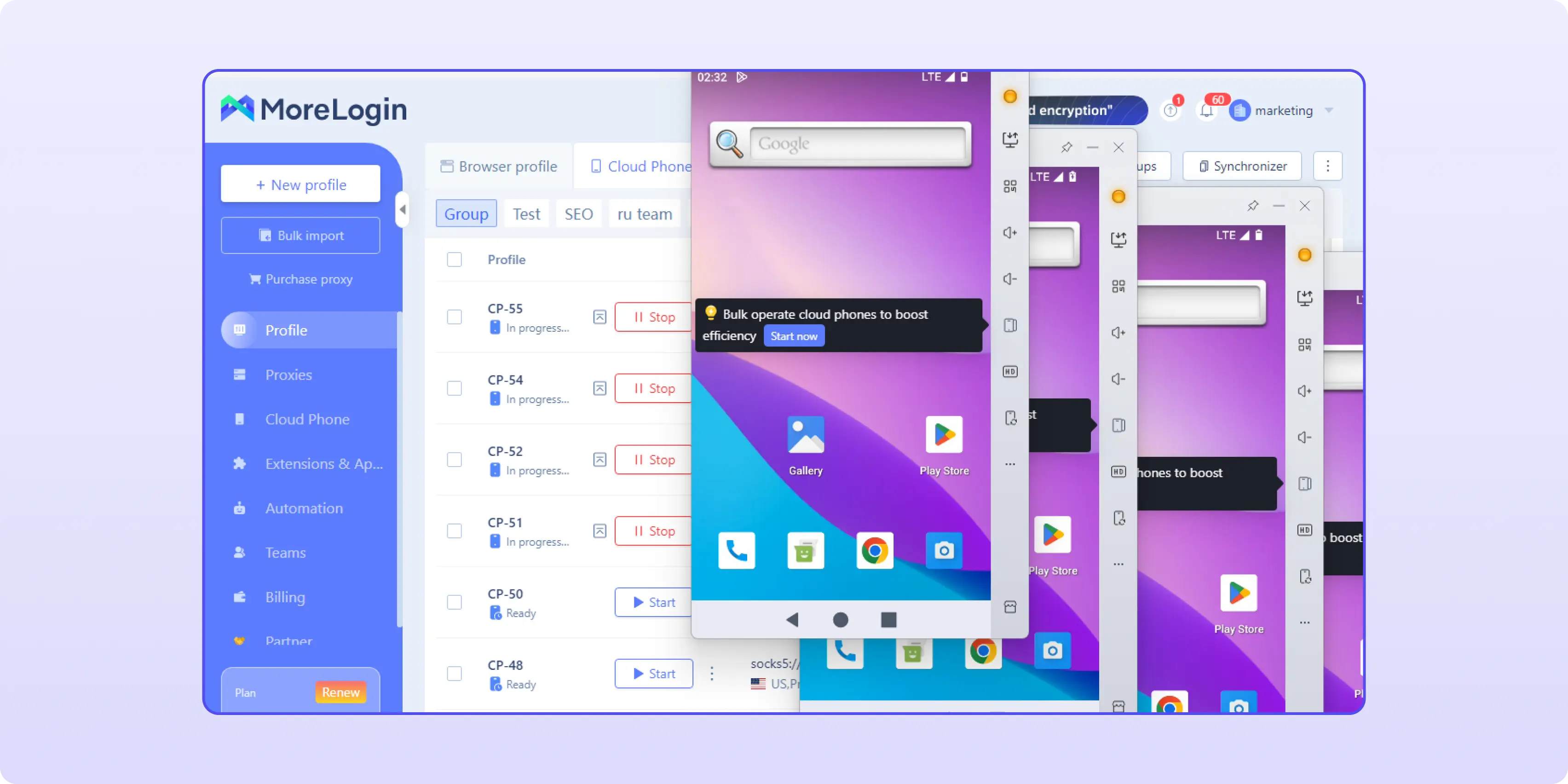 Create a new cloud phone in Morelogin.