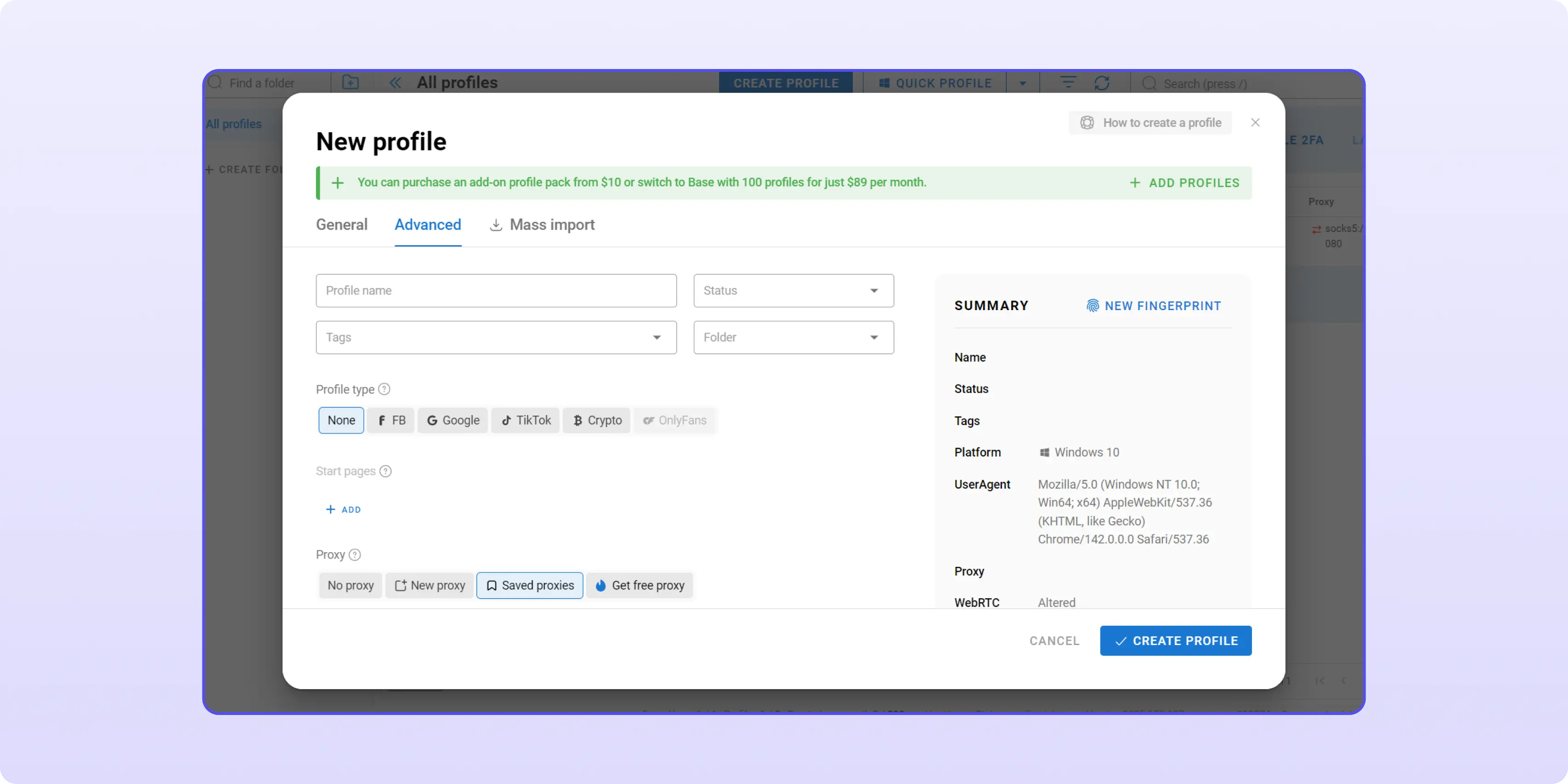 The core of its technology lies in high-quality fingerprint spoofing. Each browser profile comes with a unique combination of parameters: Canvas, WebGL, User-Agent, fonts, timezone, screen resolution and many more. They create a natural, consistent setup undetectable even by the largest ad networks